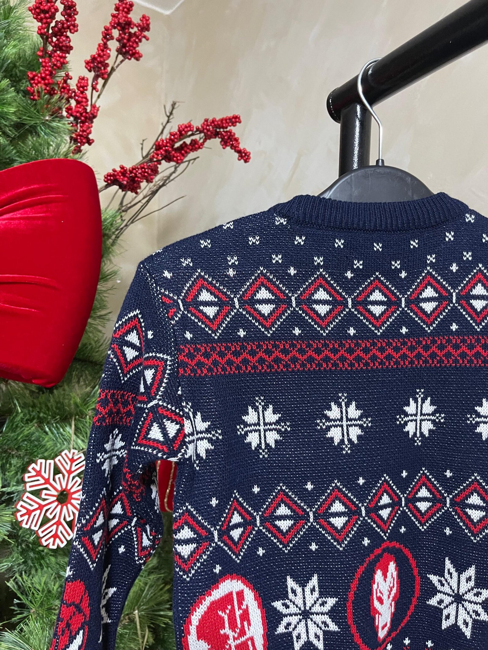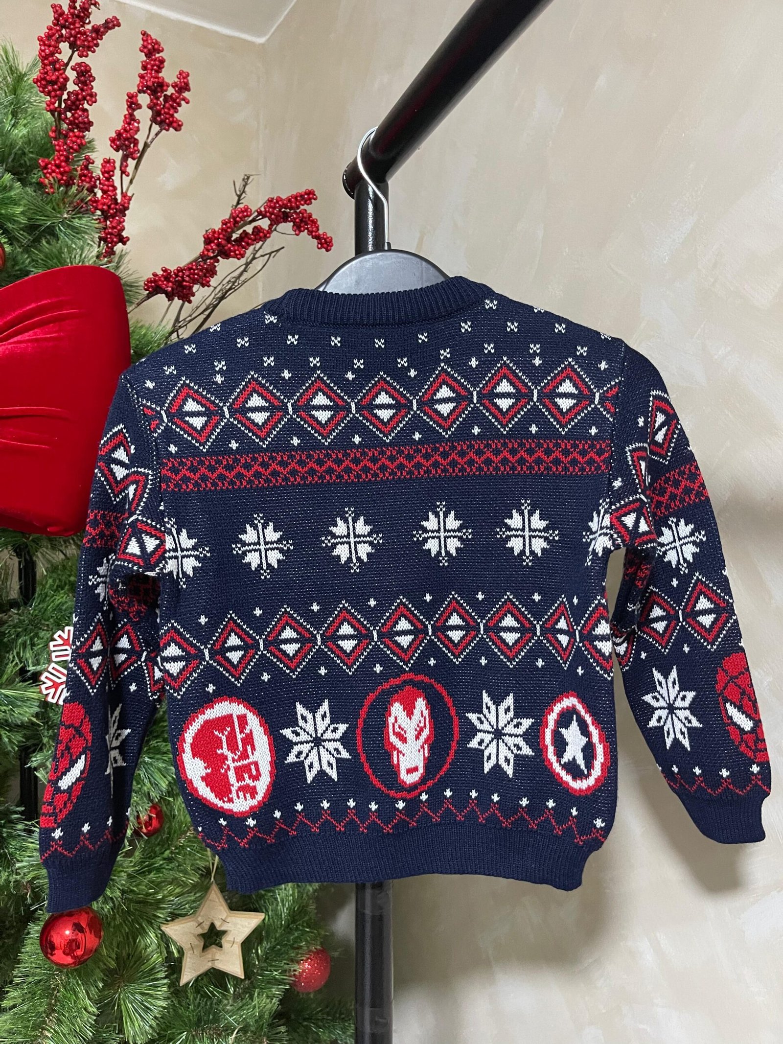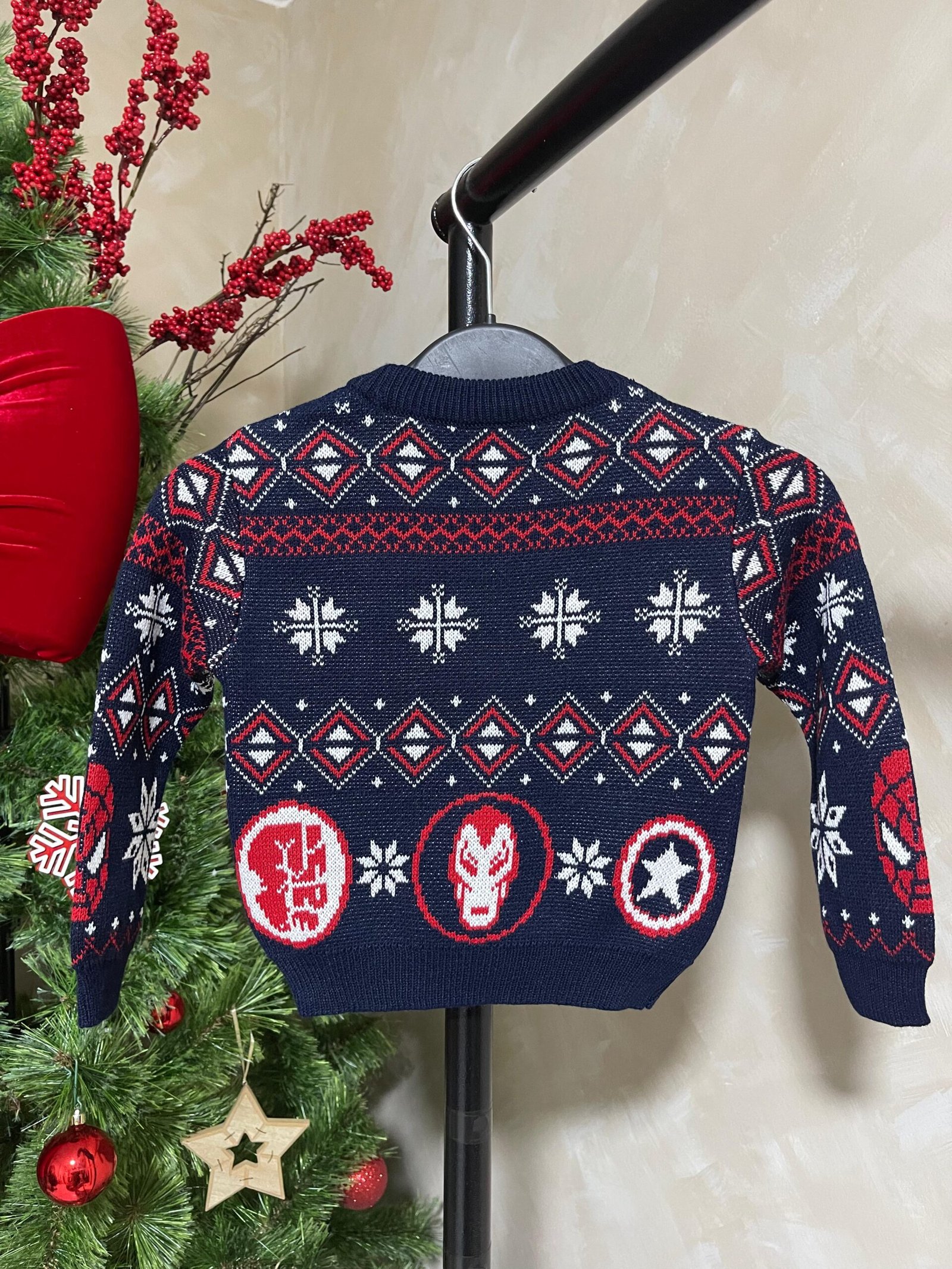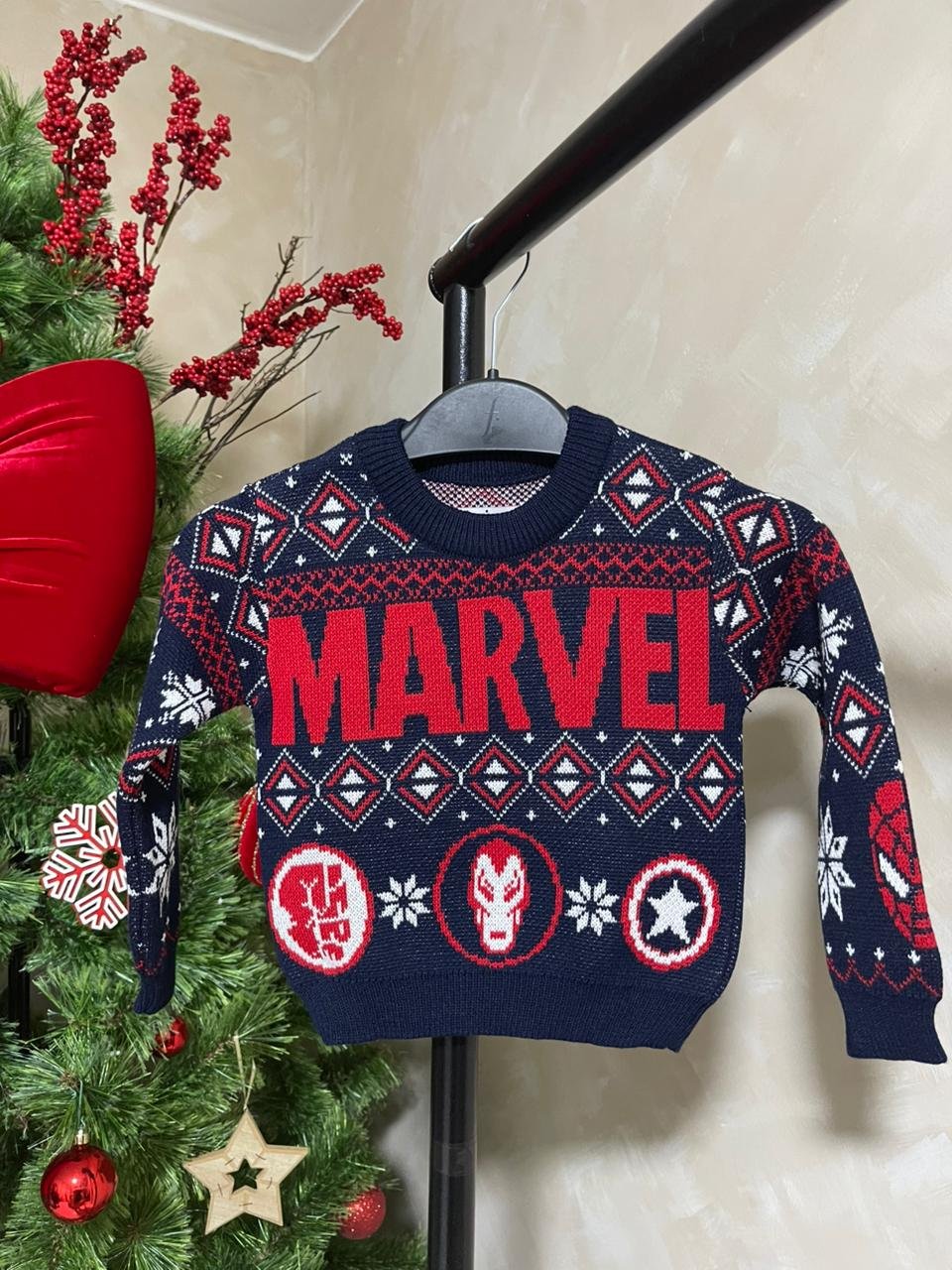 Sweater navideño modelo Marvel tejido jacquard en hilo de 3 ebras con acabado A1.